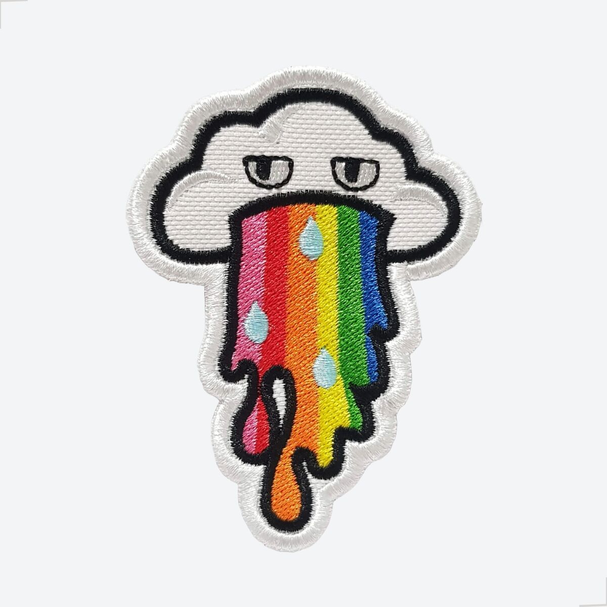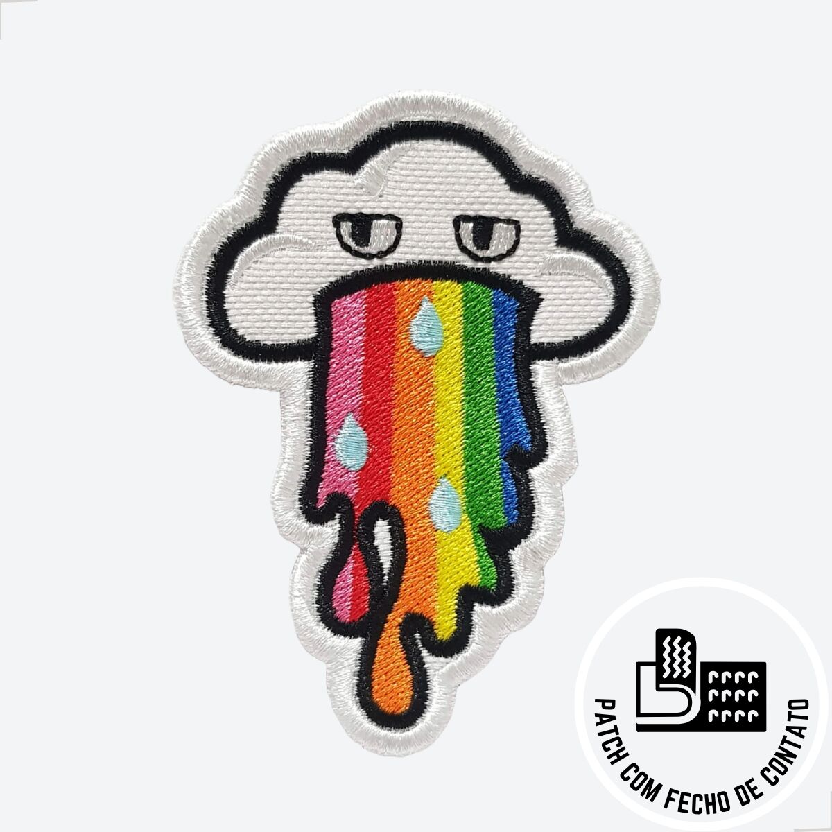 DESIGN EXCLUSIVO: Patch bordado em formato de nuvem com arco-íris e gotas, perfeito para personalização de roupas e acessórios
