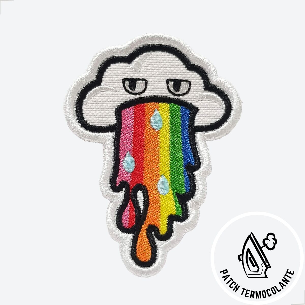 Patch Bordado Nuvem Arco-Íris, Aplique Decorativo com Gotas Coloridas